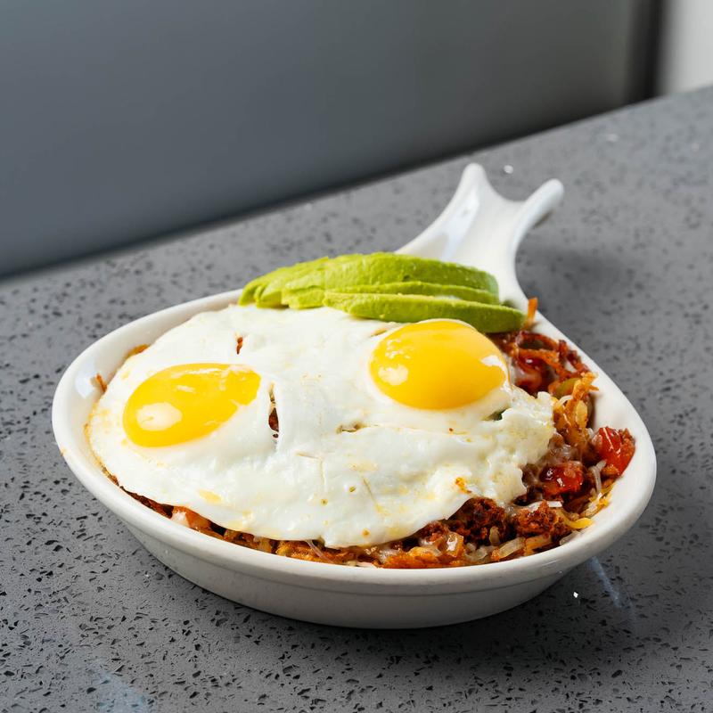 Grade AA Eggs, Any Style. Served with Hash Browns, Grits, or Fresh Fruit and choice of Pancakes, Biscuits, or Toasts. Add Smoky Grits +$4.00 | Gluten Free Toast +$2.50 | Gluten Free Pancakes +$2.50 | Add Avocado +$4.00